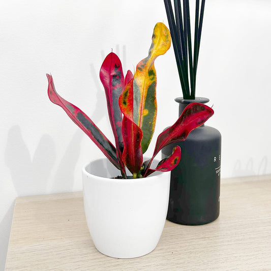 Croton Mammi Codiaeum 6cm Pot Baby House PlantCroton Mammi (Codiaeum variegatum ‘Mammi’) is one of the most colourful and sculptural houseplants available. Native to the tropical regions of Southeast Asia and the western Pacific, it belongs to the Euphorbiaceae family and is celebrated for its vividly variegated foliage and dramatic leaf...