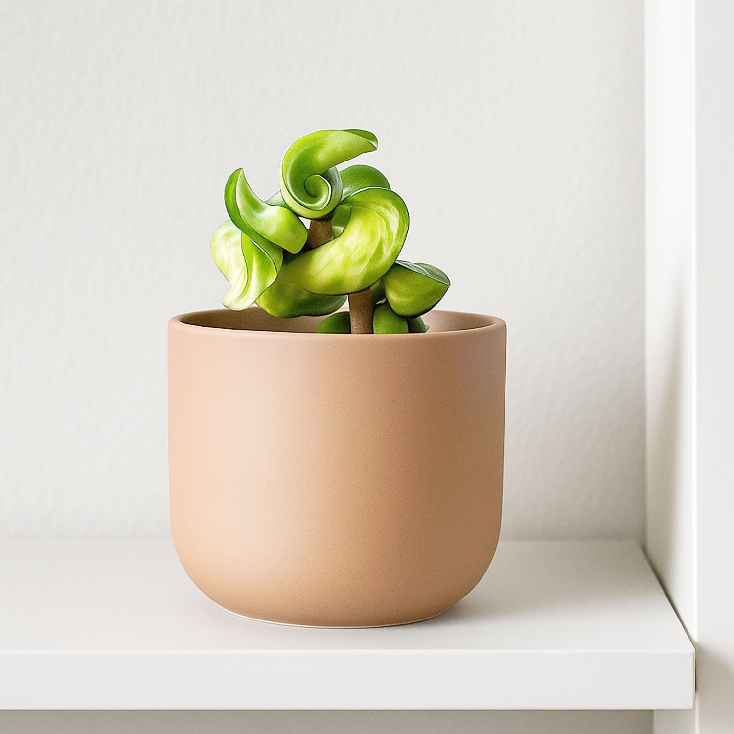 Water when the top 2–3 cm of soil feels dry. As a succulent-leaved Hoya, it stores water in its curled leaves, so it is more tolerant of drought than overwatering. Reduce watering in winter.