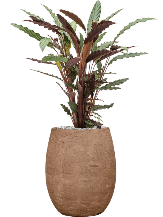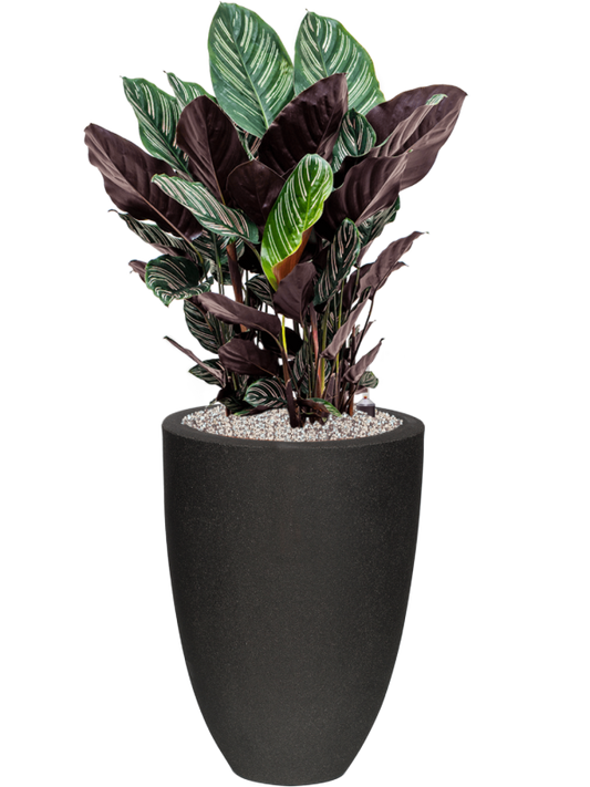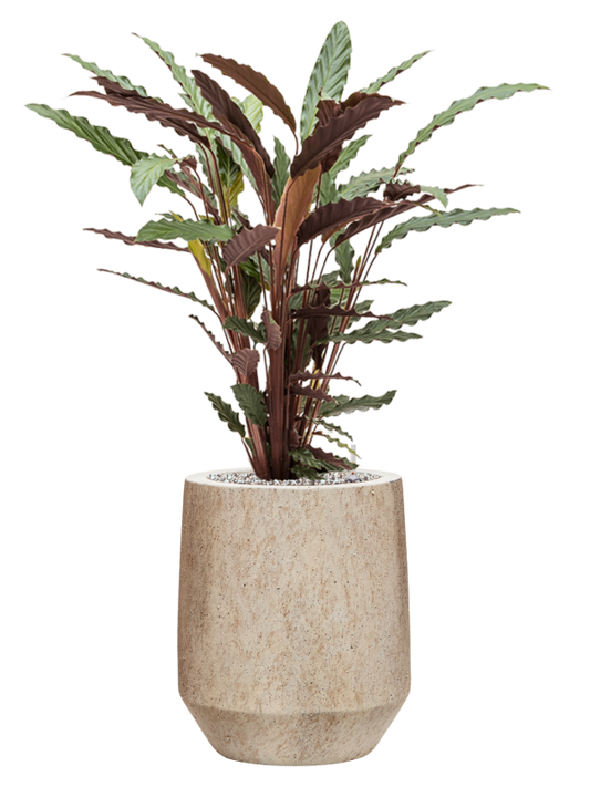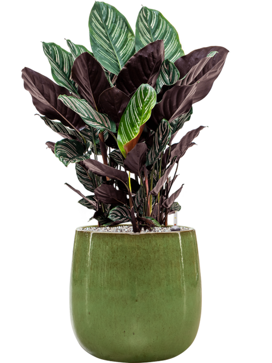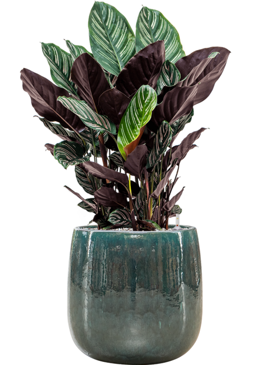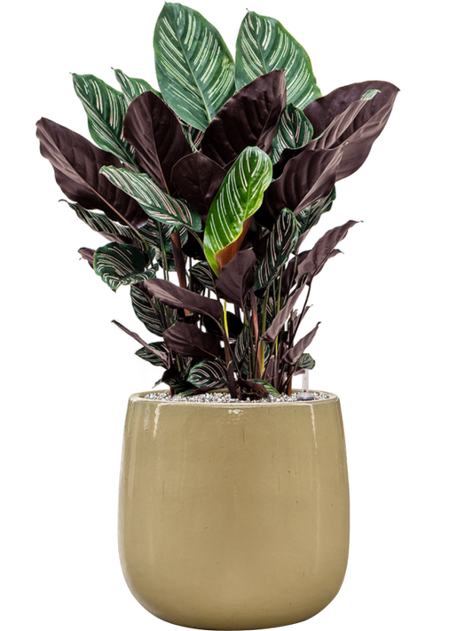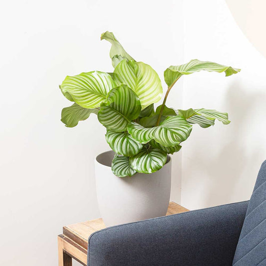 55 - 70cm Calathea Orbifolia Prayer Plant 17cm potCalathea orbifolia is one of the most striking and sought-after members of the Marantaceae family, prized for its vast, silvery-green leaves adorned with perfectly symmetrical light-green striping. Native to the tropical rainforests of Bolivia, this species embodies elegance, calm, and natural symmetry — a...
