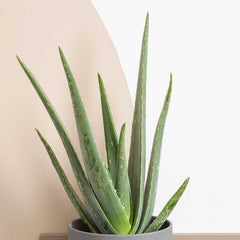 Display Aloe vera in a terracotta or stone planter to complement its desert aesthetic. It pairs beautifully with other drought-tolerant plants such as Sansevieria boncel ‘Variegata’ or Euphorbia trigona ‘Rubra’ for a sculptural, sun-loving arrangement that brings texture and tranquillity to bright indoor spaces.