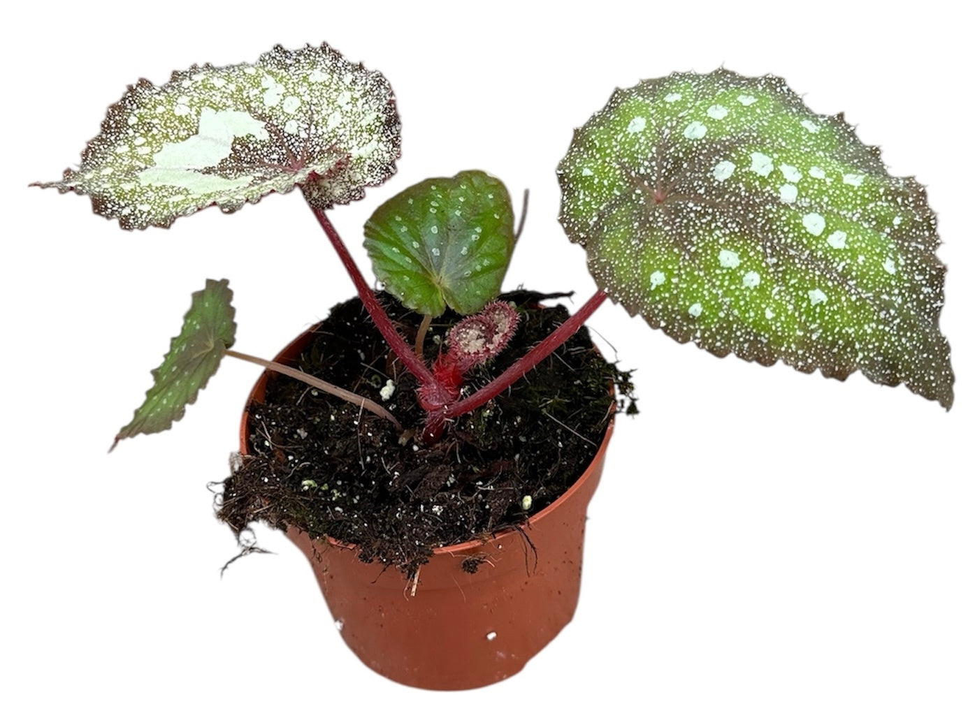 Begonia ‘Speckled’ is a charming and visually captivating foliage plant, adored for its playful patterning and delicate, artistic leaves. A member of the Begoniaceae family, this cultivar showcases soft, asymmetrical leaves dusted with tiny silver, cream, or pale green speckles that shimmer gently in the light. Each leaf is uniquely patterned, giving the plant an almost hand-painted appearance.