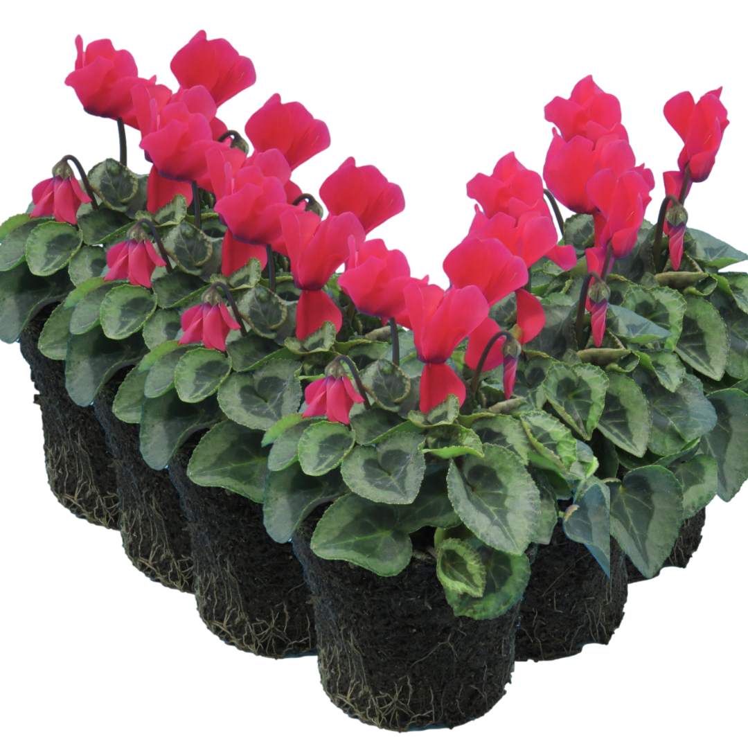 These hardy, garden-ready Cyclamen bring rich winter blooms just when your garden needs it most—flowering through cold months when other plants fade. Each variety in our Silver Leaf series features showy swept-back petals in vibrant hues of white, scarlet, salmon, or magenta, paired with beautifully patterned silver foliage for a long-lasting, high-contrast display. Perfect for hanging baskets, patio containers, raised beds & shady corners, they bring life to even the darkest days.