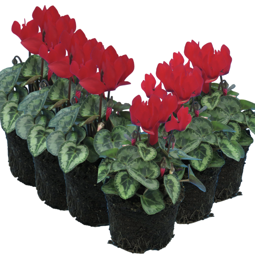These hardy, garden-ready Cyclamen bring rich winter blooms just when your garden needs it most—flowering through cold months when other plants fade. Each variety in our Silver Leaf series features showy swept-back petals in vibrant hues of white, scarlet, salmon, or magenta, paired with beautifully patterned silver foliage for a long-lasting, high-contrast display. Perfect for hanging baskets, patio containers, raised beds & shady corners, they bring life to even the darkest days.