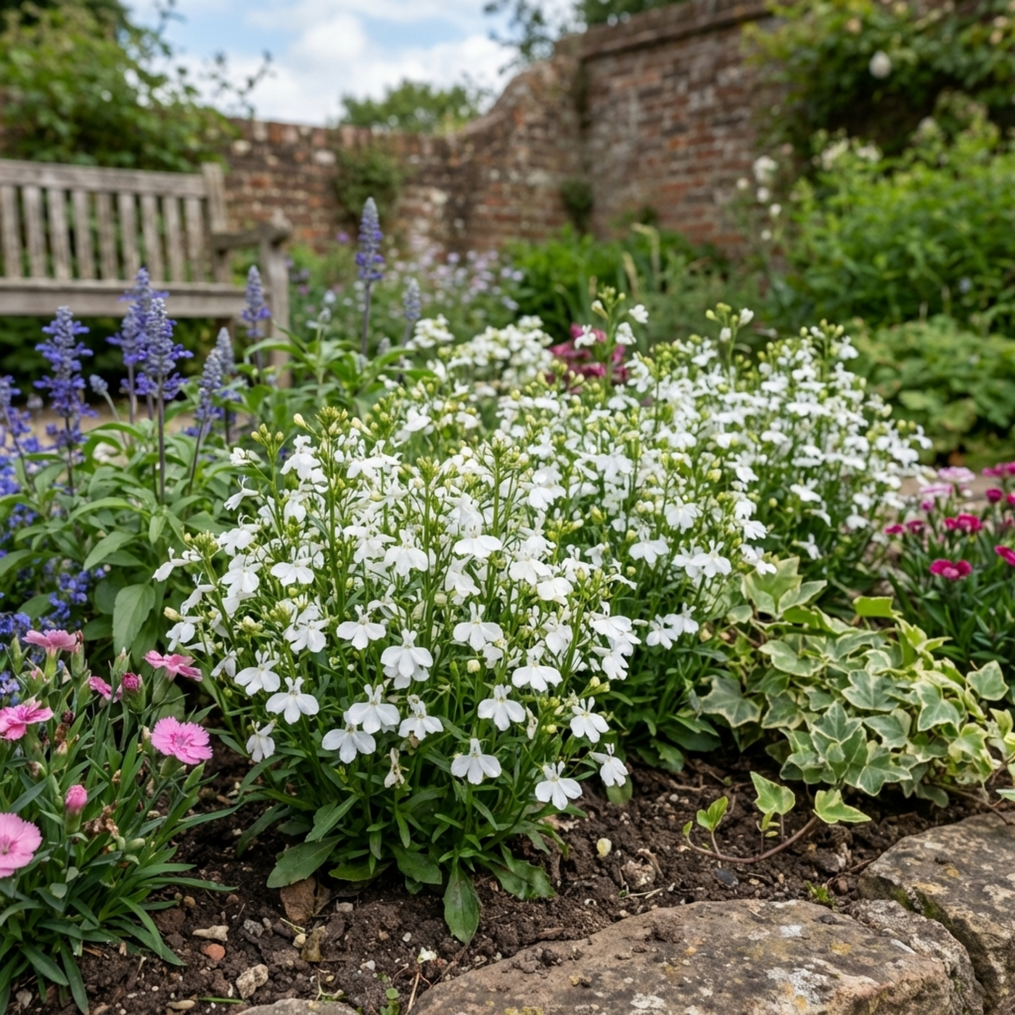 Set of 3 or 6 Lobelia Upright Sweet Springs White Flowering Plants, Garden Ready Summer Bedding, 10.5cm Root-Ball