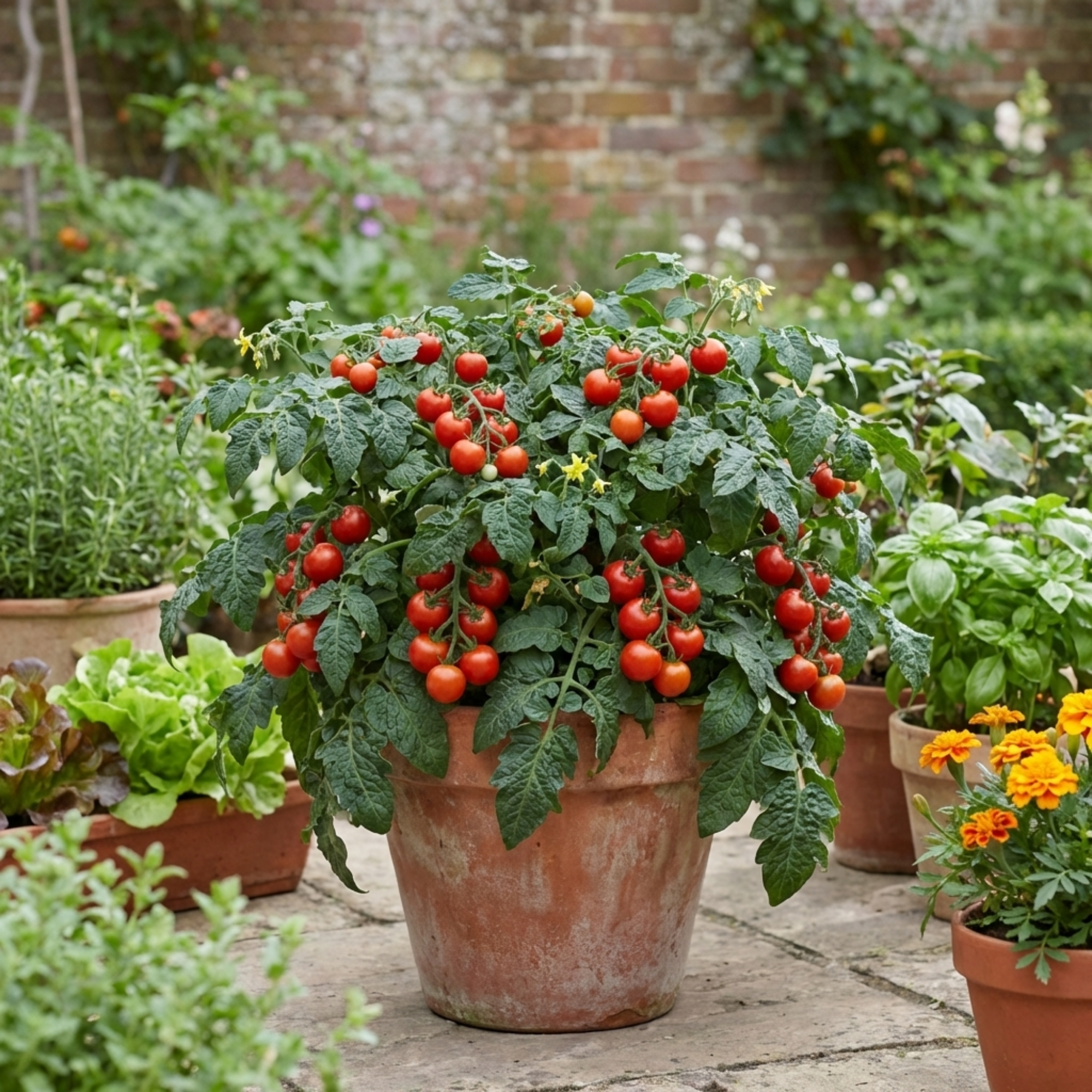 Patio tomato varieties are ideal for modern growing, producing abundant trusses of sweet, flavour-packed cherry tomatoes on compact, bushy or lightly trailing plants. These high-yielding types are specially bred for containers and smaller spaces, offering excellent disease resistance and dependable performance throughout the season. From bright golden-yellow fruits to classic red cherry tomatoes, each plant delivers consistent yields and vibrant taste. Typically growing 30–60 cm tall with a similar spread, they form neat, manageable plants perfect for balconies, patios, window boxes and raised beds.