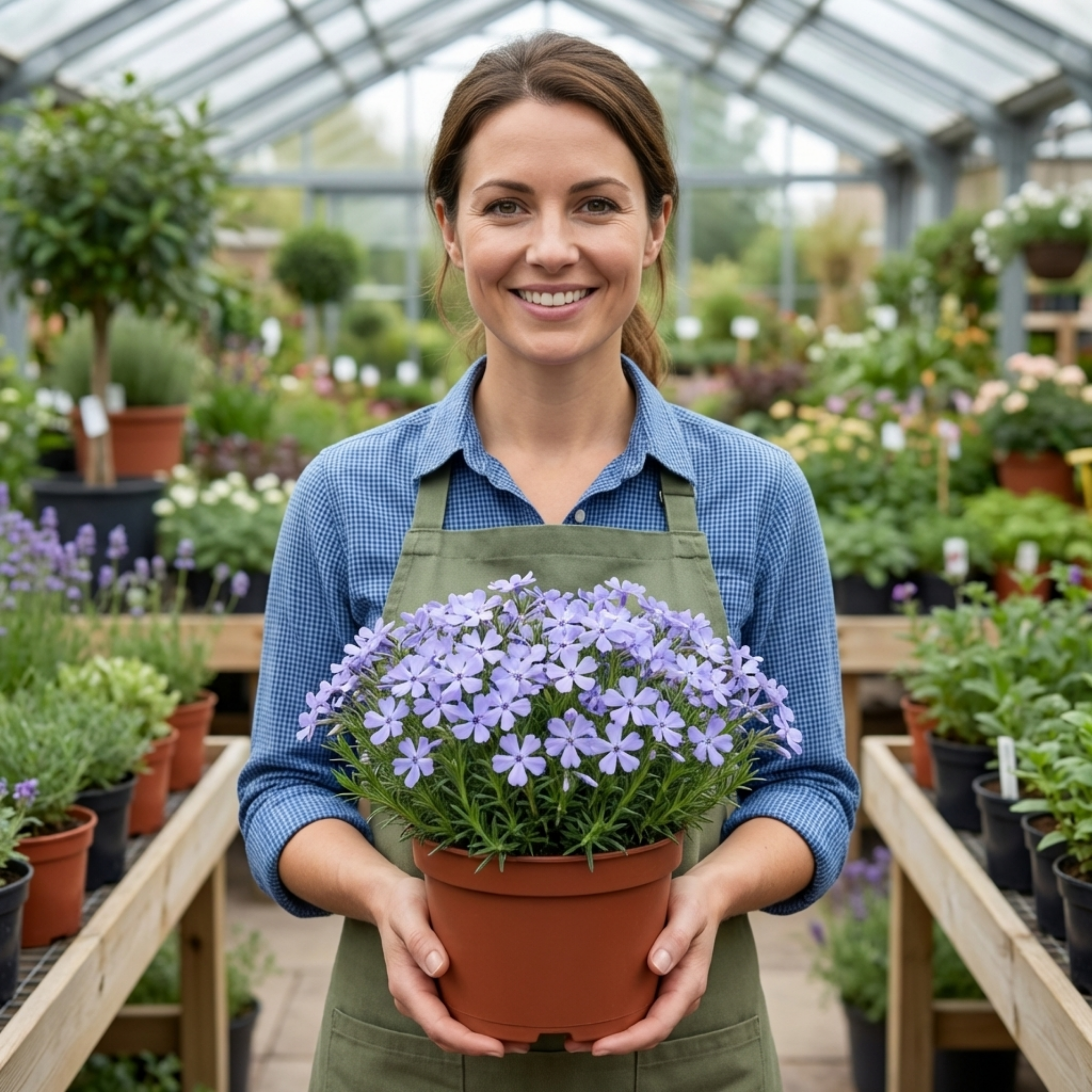 Phlox subulata 'Emerald Cushion Blue' is a stunning low-growing alpine perennial, widely valued for its ability to form dense, spreading cushions of evergreen foliage that become smothered in a profusion of soft lavender-blue flowers each spring. This reliable and hardy variety is perfect for adding colour and texture to rockeries, alpine beds, border edges, dry walls, and containers. Once established, it requires very little maintenance and provides excellent ground cover throughout the year.