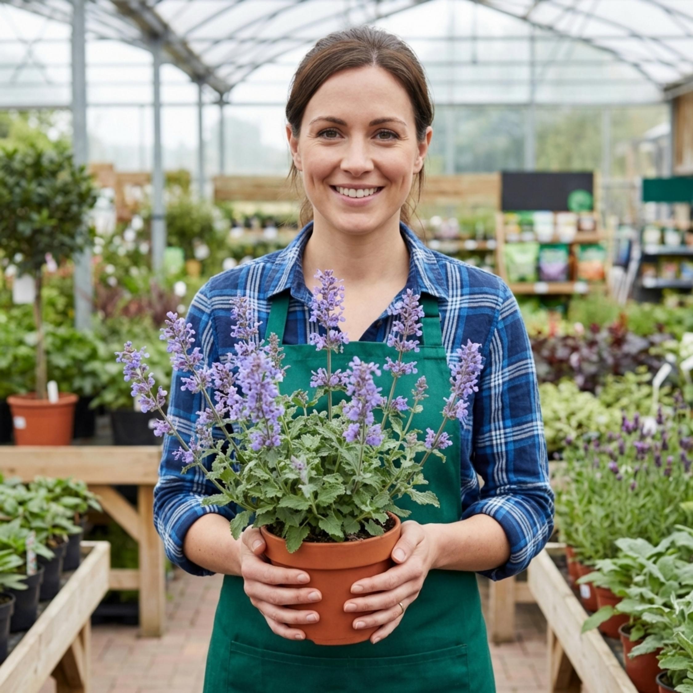 Nepeta × faassenii, commonly known as Catmint or Faassen's Catmint, is a wonderfully reliable hardy perennial prized for its long season of soft, lavender-blue flower spikes and aromatic grey-green foliage. A recipient of the prestigious RHS Award of Garden Merit, this classic cottage-garden plant produces masses of delicate blooms from late spring right through to early autumn, providing months of colour and interest in the garden.