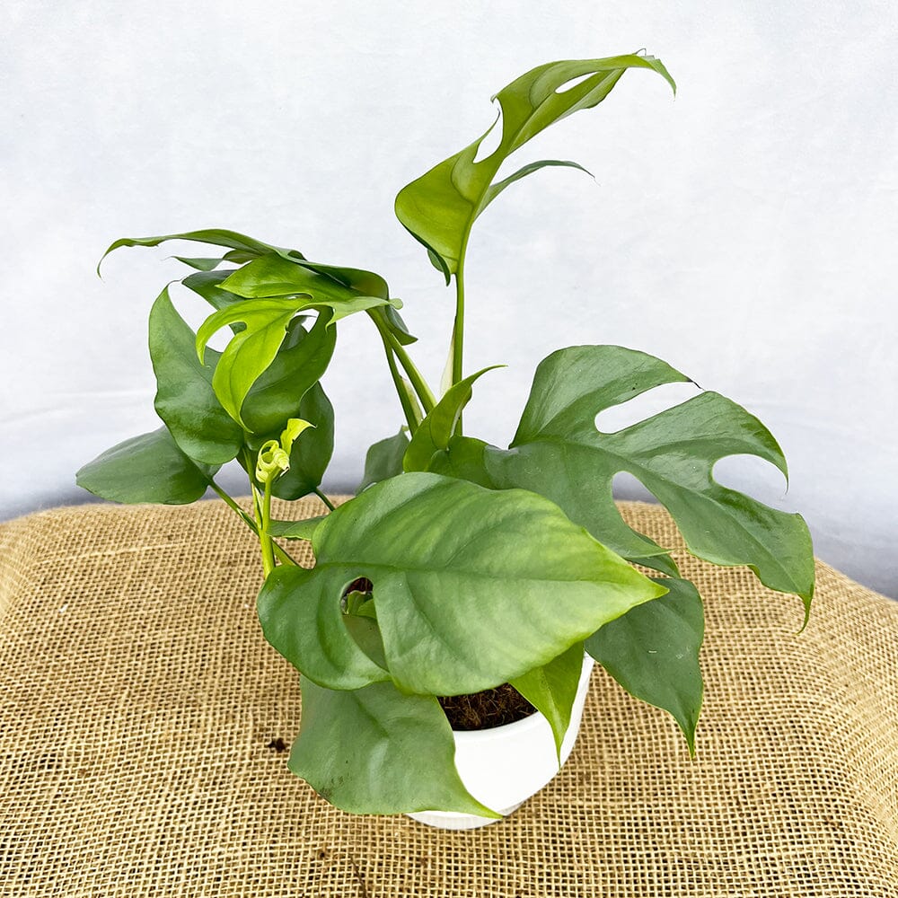 Growth: Fast-growing climber, 2–3 m; glossy green split leaves resembling a miniature Monstera